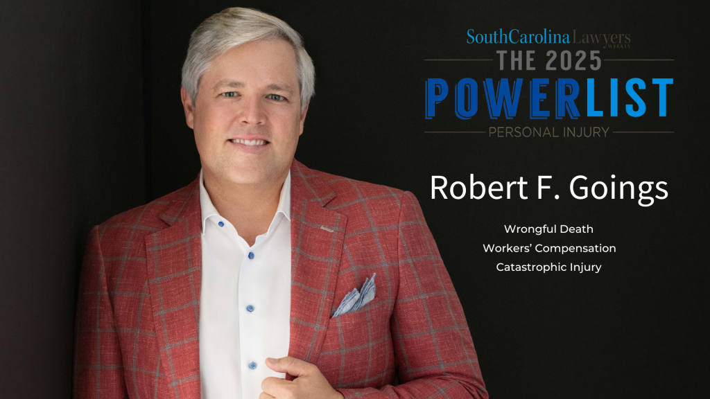 Last month, Robert F. Goings, Attorney and Founder of Goings Law Firm, LLC, was honored by South Carolina Lawyers Weekly as a member of their prestigious 2025 Personal Injury Law Power List. This recognition highlights his exceptional contributions to personal injury law, leadership within the legal community, and unwavering commitment to serving the people of South Carolina.